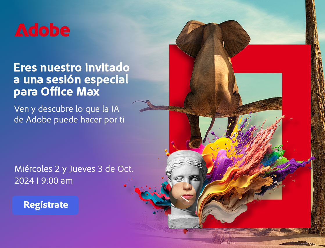 Toma unos breves minutos para realizar el registro, “Adobe Sesión Especial Office Max”